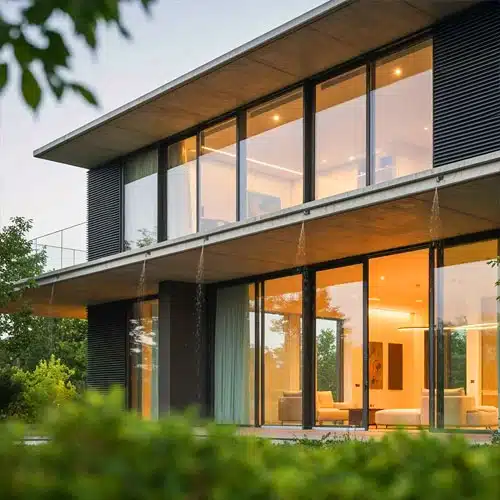 Débords de toiture et casquettes : Sur la façade Sud, des débords de toiture calculés ou des casquettes fixes peuvent bloquer le soleil haut d’été (angle solaire élevé) tout en laissant passer le soleil bas d’hiver. Le calcul de leur profondeur dépend de la latitude de votre projet. Un débord de 80 cm pour une fenêtre Sud peut suffire à bloquer les rayons d’été.