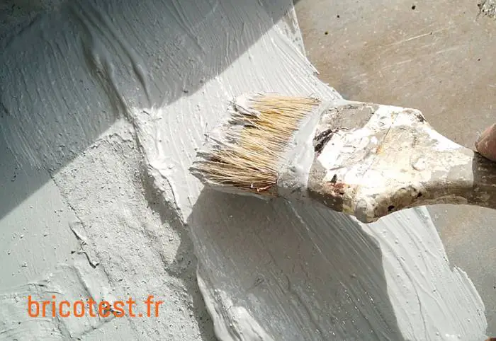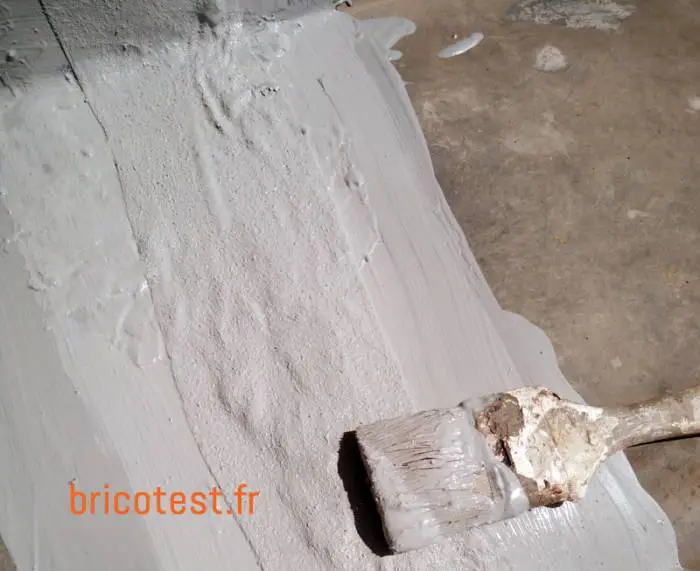 Une première couche diluée à 40% servira de primaire d’accroche, on aura bien sur dépoussiéré avant!