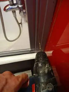 Une fois sec, percez deux trous à l’aide d’un foret de 3 mm pour les vis de maintien du pare-baignoire. Placez les vis et les capuchons prévus à cet effet.