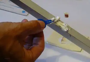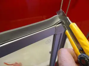 Préparez et insérez le joint d’étanchéité en caoutchouc à la base, dans sa rainure. Coupez-le à la bonne taille.