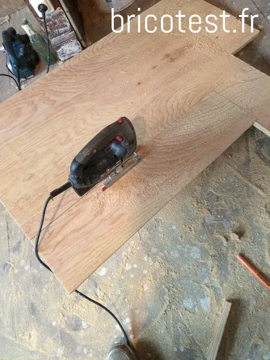 Les panneaux mesurent 250×125 cm, pour le transport nous les avons coupés en deux à la circulaire ils font 18mm d’épaisseur