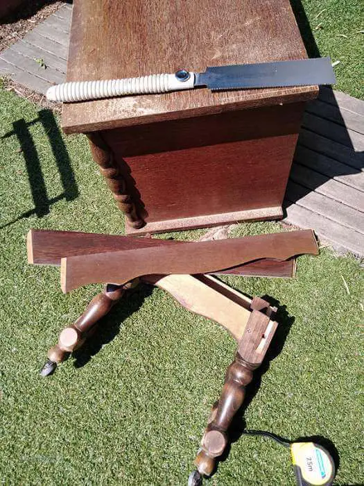 De nombreuses transformations à faire: couper, raccourcir, enduire, poncer, peindre, enlever les pieds…au travail